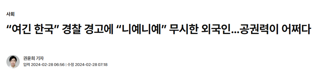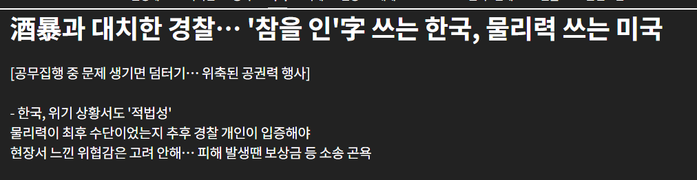 위의 뉴스들은 일부이지만, 한국 경찰의 공권력이 약하다는 뉴스는 종종 보인다.