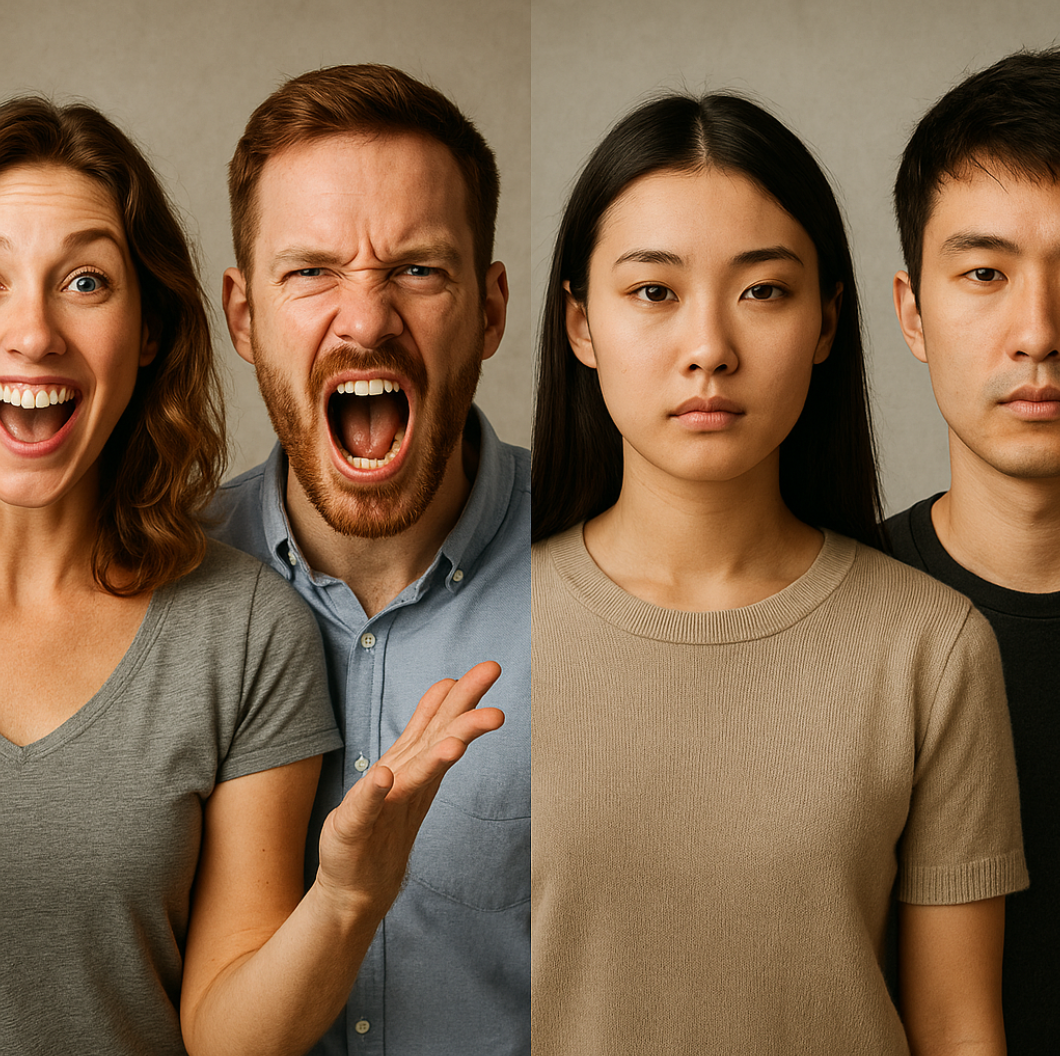 반면 일본은 감정 표현에 있어 한국과 비슷한 특성을 보인다. 일본의 대표적 개념인 ‘혼네(本音, 진심)’와 ‘다테마에(建前, 겉치레)’는 실제 감정과 사회적 역할을 철저히 분리하는 문화를 반영한다. 상황에 따라 표정을 만들고, 분위기를 해치지 않기 위해 감정을 억제하는 경향이 강하다.